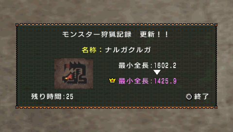 ↑に書いたようにナルガ装備を作る為にナルガ2対を狩っていました