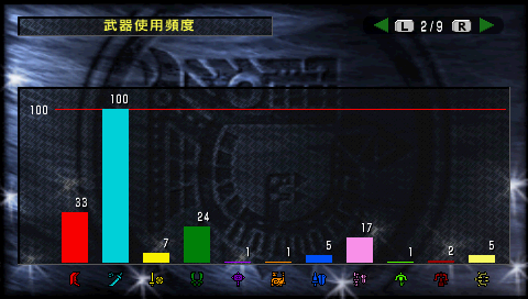 私は平均的に使っているので全武器40ずつくらいですかねぇ~