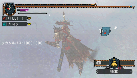 ウカムの体力を10000くらいまで減らしたときに回復アイテムが尽きてしまい